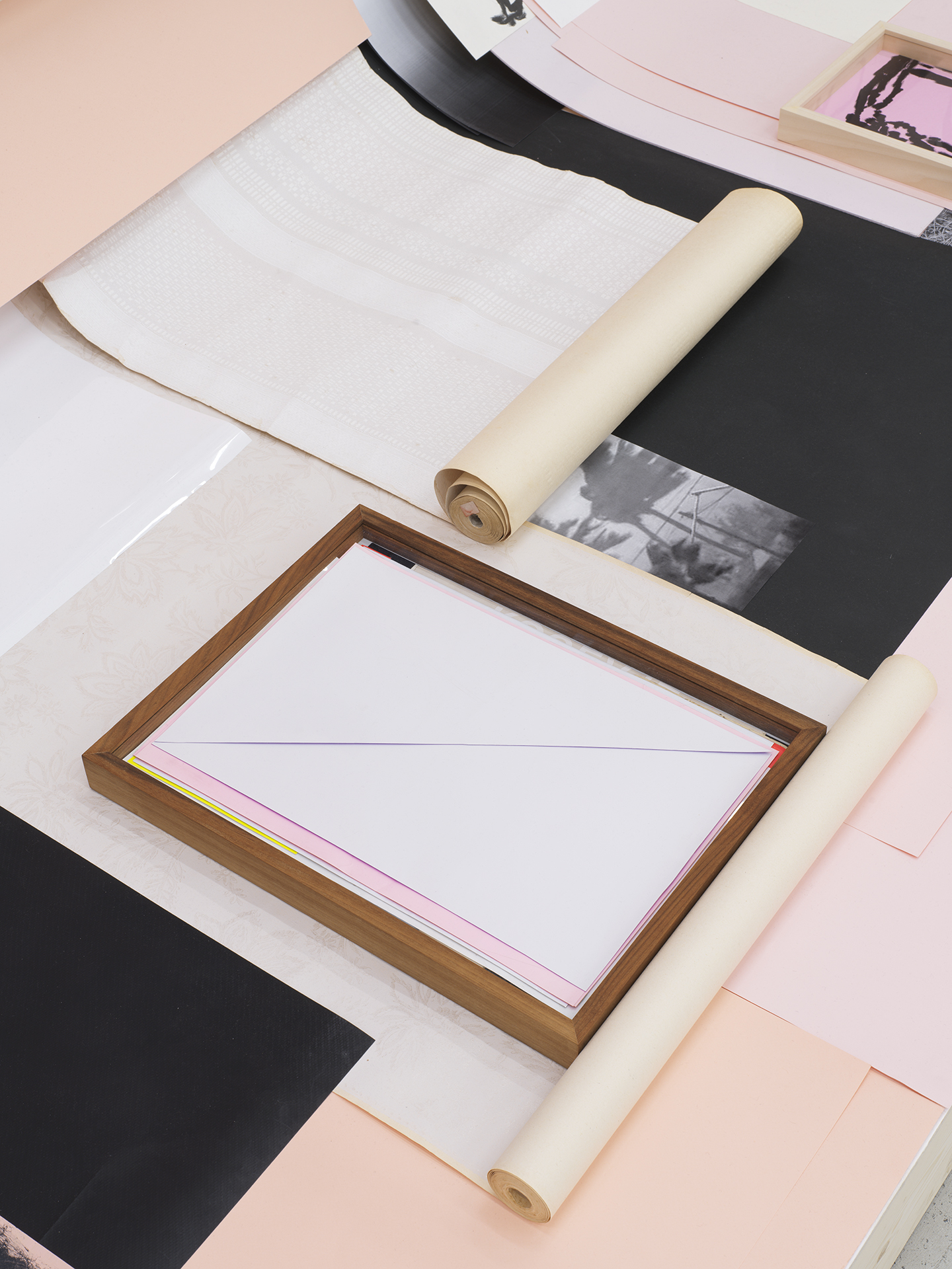 The layered nature of the installation, despite the intense intertwining of two related aesthetics, allows the artists to retain a degree of fragmentation and individuality, without merging their practices into an inseparable whole. They allow themselves space for the freedom of close coexistence of two visual expressions, a result of years of exchanging creative processes, mutual understanding, trust, and an intimate deepening into personal archives and family histories shaped by the ever-changing socio-political realities. The moment of sisterhood and solidarity that has developed through their collaboration imbues the work with a candid optimism that inspires them with hope, the search for solutions, and freer visions of the future.