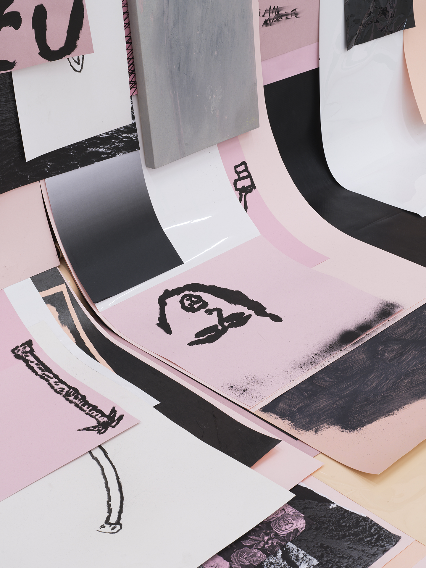Artists Nevena Aleksovski and Maja Babič Košir have, through years of collaboration, developed a recognizable artistic expression built through multimedia and in-situ spatial interventions. Their latest project, Letters from the South (2024), represents an example of a visually rich narrative that intertwines their aesthetically related practices into a unified wall installation combining drawing, collage, painting, ready-made and sculpture.